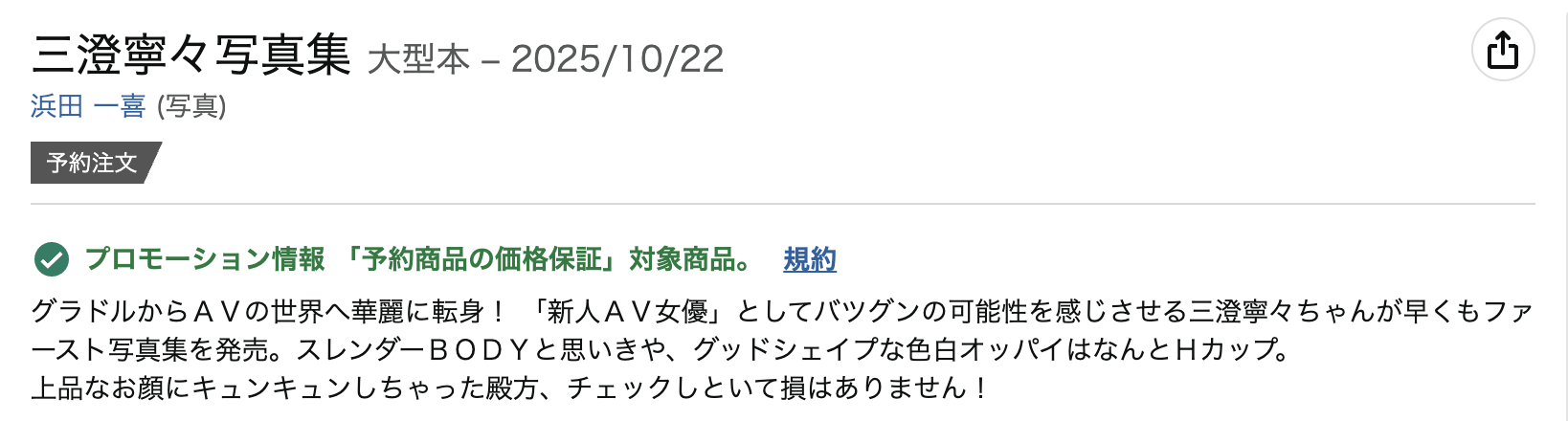 一句话就可以解释了,就是「拍过写真的美丽大姊姊AV解禁」:是的,三澄宁々在成为片商ideapocket的新人女优之前曾在杂志上拍过性感写真、后续也会有写真集问世,也提前在社群(https://x.com/misumi_nene)现身,天然H罩杯的丰满上围、高挑的身材比例加上美艳的脸蛋是她最吸引的地方⋯